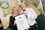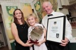 Mount Leinster Clothbound by Coolattin Cheddar named the Supreme Champion at the Irish Cheese Awards 2015. Eilis Broderick pictured presenting Fiona and Tom Burgess of Coolattin Cheese with their award