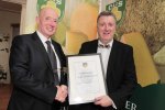 Michael Horgan of Horgan’s Delicatessen Supplies pictured presenting the Class 3 Award, Soft, Fresh Cheese, All Milks, to Sean Ferry of Macroom Buffalo Cheese for his Macroom Buffalo Mozzarella