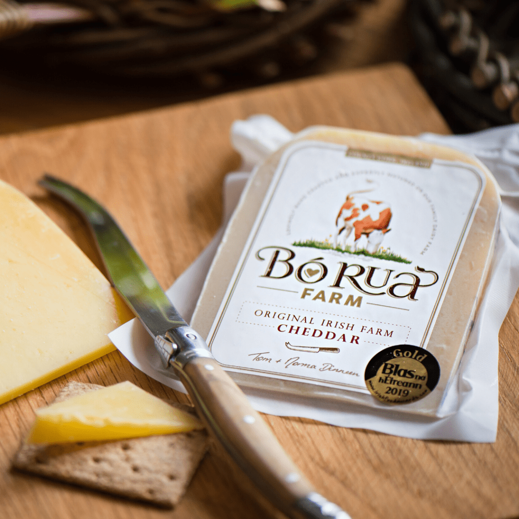The inspiration for the name of the Dinneen’s farm and their cheese came from their gentle Montbéliarde cows, a breed that originate in France where they are synonymous with traditional cheesemaking. They have beautiful rust coloured markings, hence the name Bó Rua, the Irish for Red Cow.
